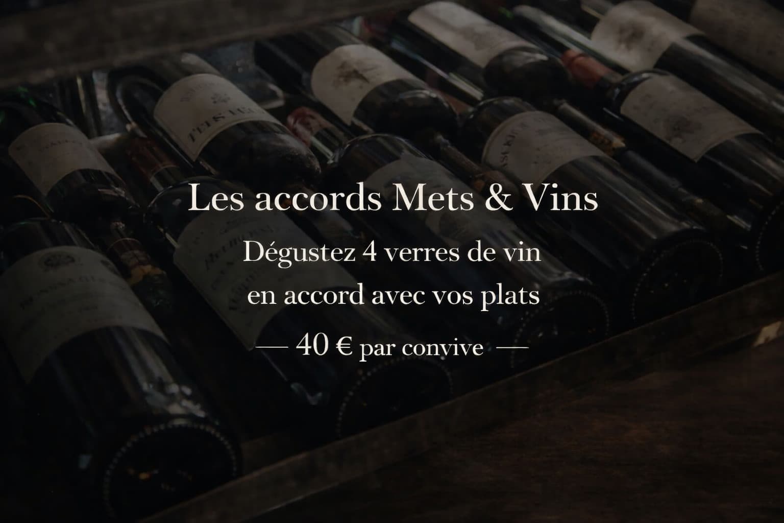 Pensé comme un fil conducteur exigeant et harmonieux, cet accord valorise pleinement le travail en cuisine et la sélection des vins, dans un esprit de finesse, de précision et de plaisir partagé.